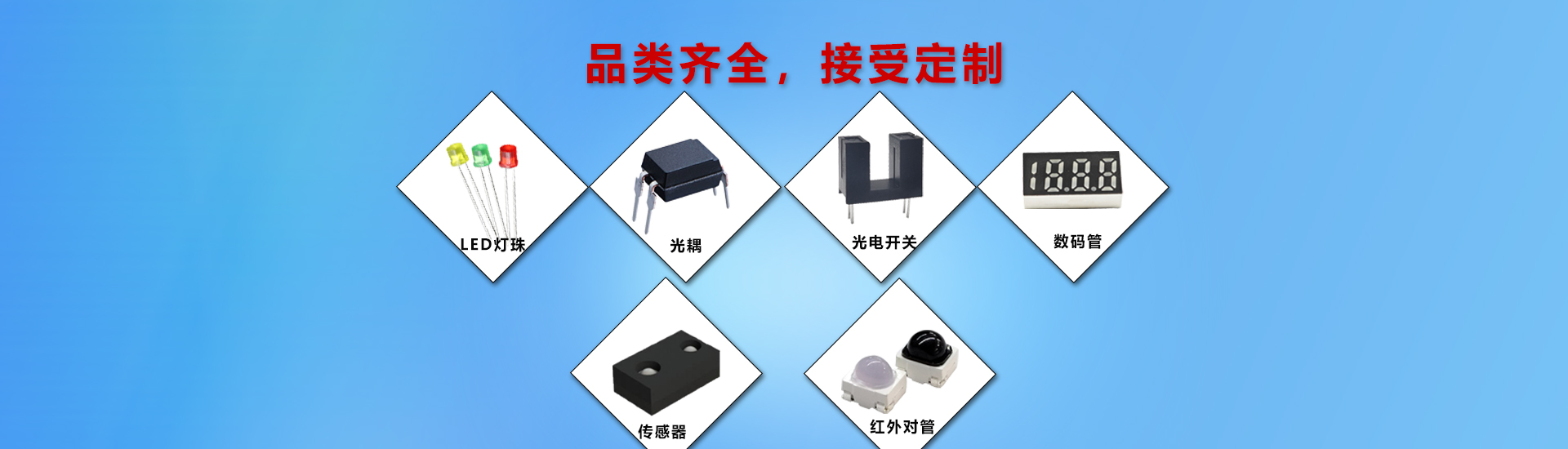 主營(yíng)LED燈珠、數(shù)碼管、光耦、光電開(kāi)關(guān)、紅外對(duì)管等產(chǎn)品